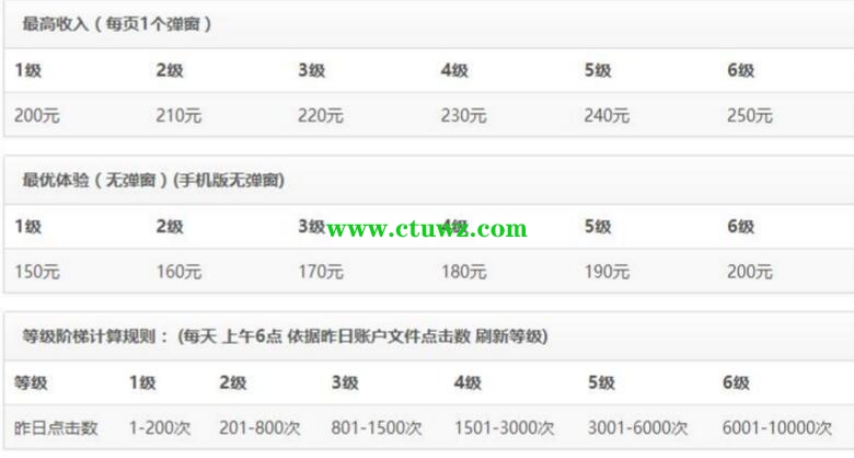 一木禾网盘根据活跃度来确定现金分成等级,从180到500不等。