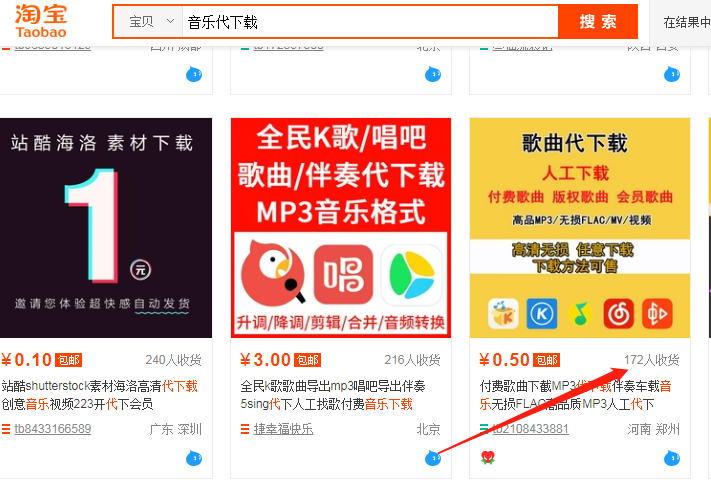 看下淘宝上销量都是几百单,销量不高,单价也不高,须知这类服务类商品,标价非卖价,销量也不是平台上现实的区区几百单,这类商品复够率高,平台只是一个引流渠道。客户不可能只要一首歌曲,可能几十首上百首的要。