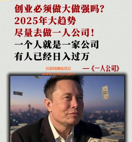 我再次强调,所谓的“一个人的公司”并不是真的只有一个人,2到5人的团队也可以称为“一个人的公司”,其核心是利用互联网的杠杆效应来赚钱。
