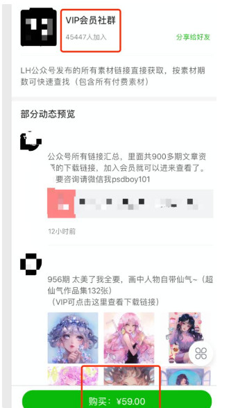 还有一个更夸张的。这个是专注设计素材的,价格便宜,加入VIP会员只需要59元,成交了45447人。系统是通过小鹅通搭建的,数据是无法修改的,刷也没有必要,算下来就是260多万收益。